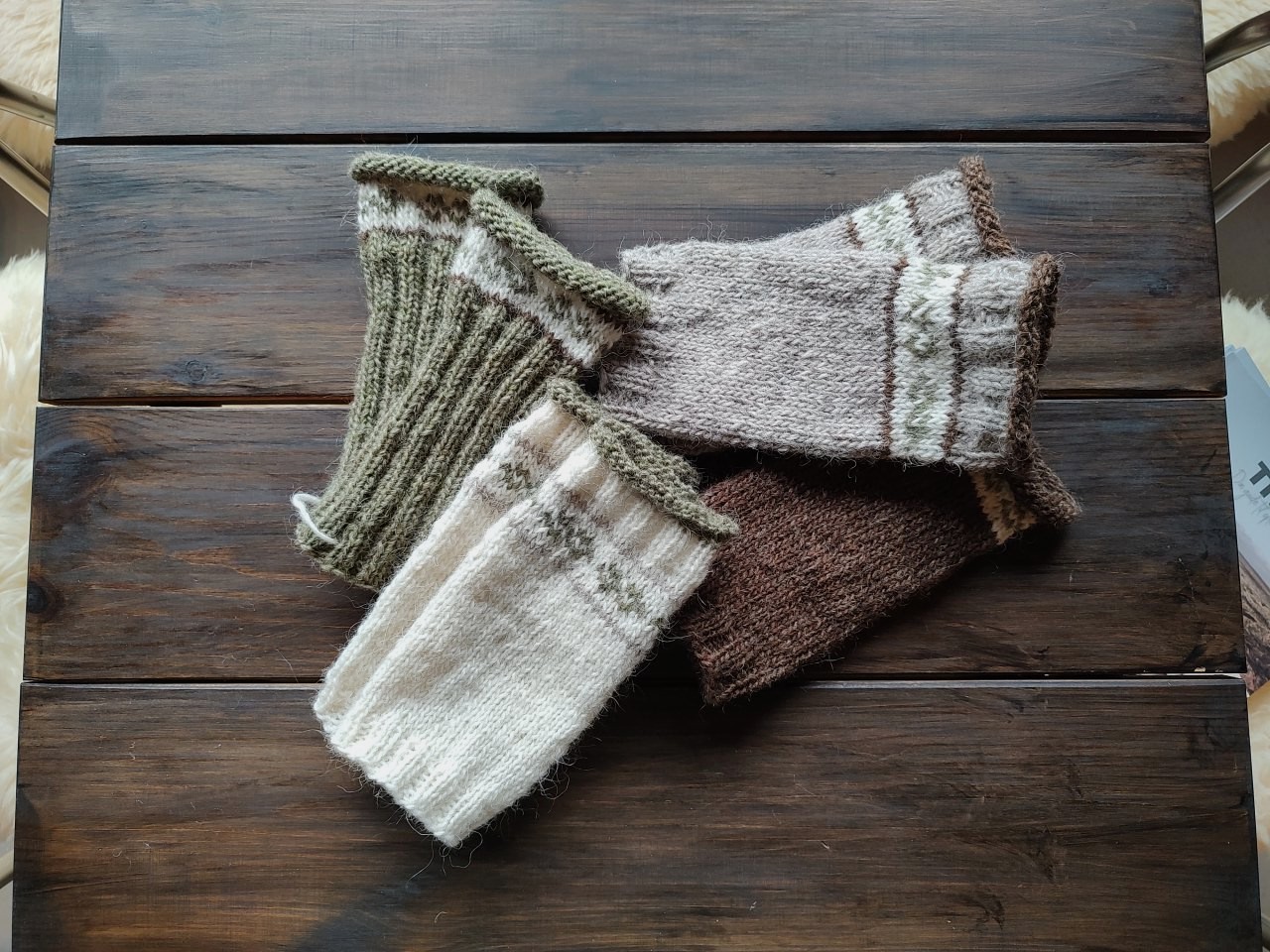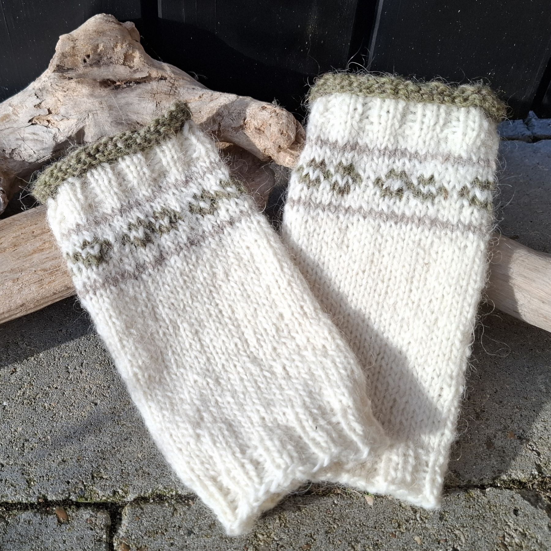 Pulsvarmere til at varme håndleddene. Kan bruges under en jakke/frakke. Sælges i sæt af to stk. og måler fra 19 – 21 cm i længden og omkreds ca. 19 cm. Er strikket i Islandsk Léttlopi i 100 % uld. Skal håndvaskes v/30°.